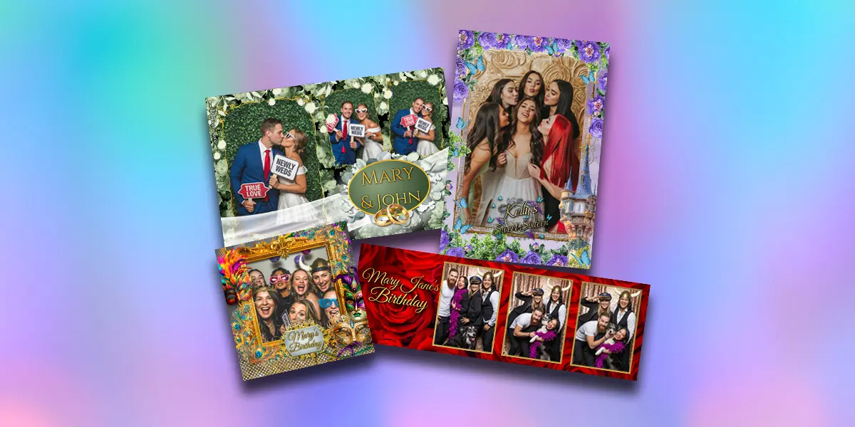 Create premium photo booth templates in seconds. Our intuitive 6-step builder features hundreds of designer themes perfect for quinceañeras, weddings, and special events. Custom overlays and automatic image slot alignment included.